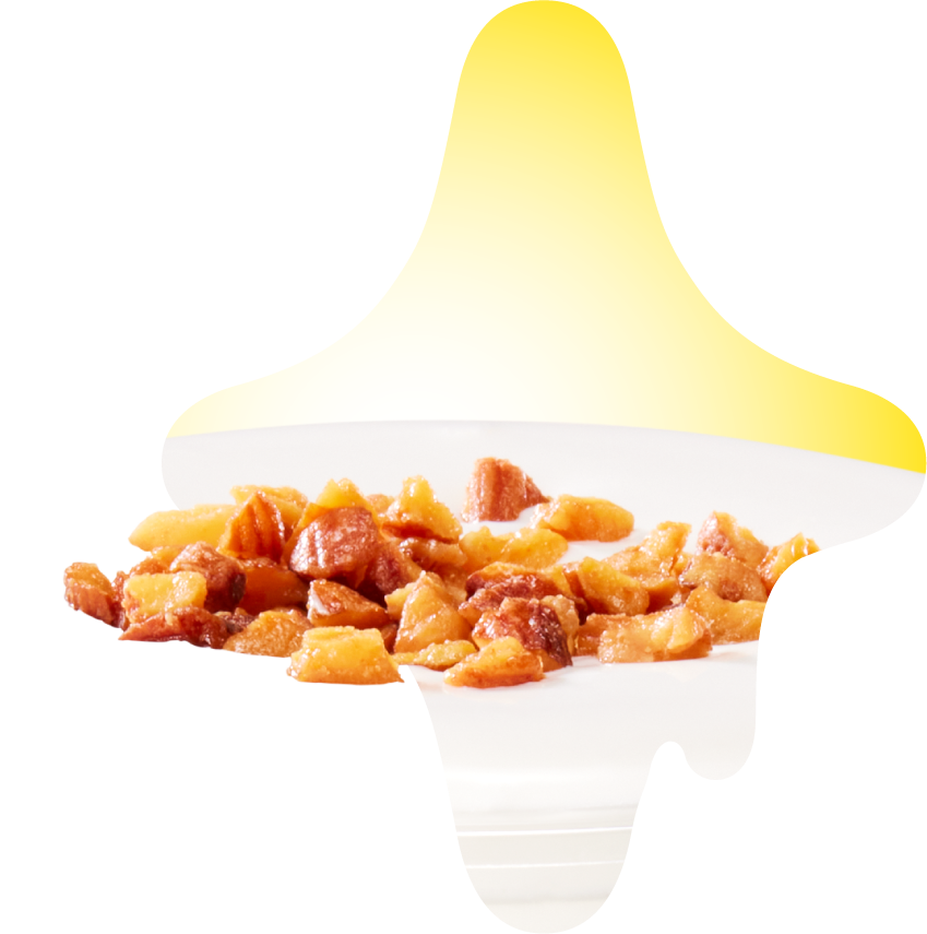 香ばしくローストしたアーモンドを、くだいてキャンディングコーティング。トップにパラッと散らしたら、食感と風味の楽しいアクセントに。